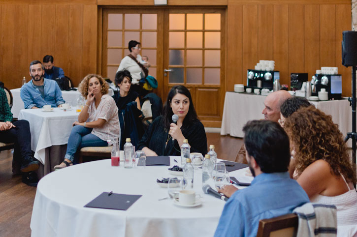 Mesa redonda con la artista Monica Mura, Juan Manuel Monterroso, Decano de la Facultad de Historia del Arte, la actriz y fotógrafa Soledad Felloza, Rafa Quintía, presidente de SAGA (Sociedade Antropolóxica Galega), y Ana Paula Castro de Galantiqua como moderadora.