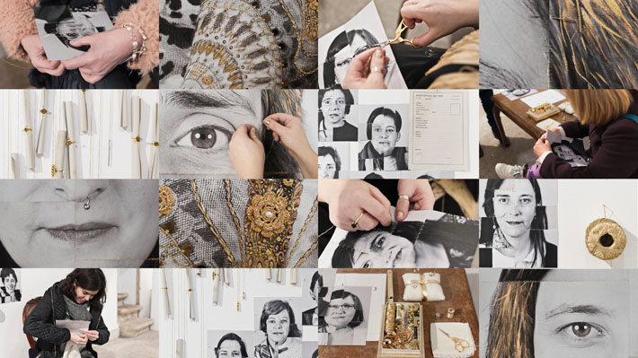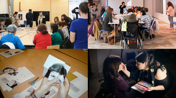 Mixed media. Variable Measures 2015/2016. Monica Mura Installation and proposal for the realization of collective portraits made from the creative workshop directed by Monica Mura. In collaboration with the association ACADAR Association of Mulleres with Disabilities of Galicia in the Provincial Museum of Lugo.