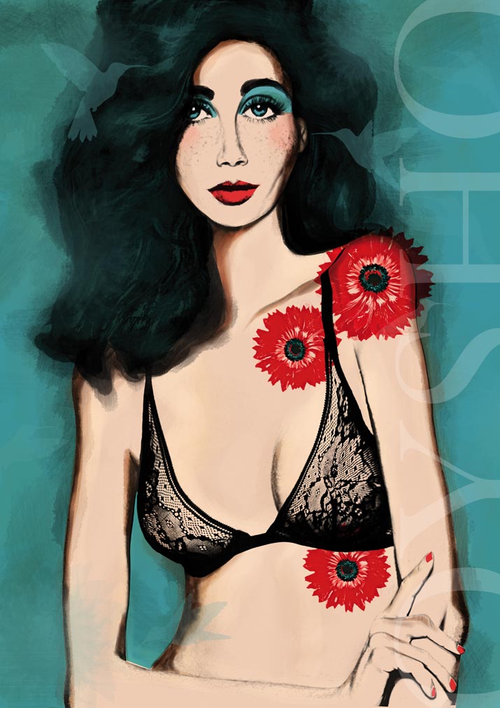 PARA OYSHO. INFORMACIÓN MANIPULACIÓN DE FOTOGRAFÍA, DIBUJO DIGITAL. Propuesta para Concurso de Ilustración. Homenaje al Pop Art pero en clave actual (clara referencia al retrato de “Elizabeth Taylor” por Andy Warhol, en el año 1963).