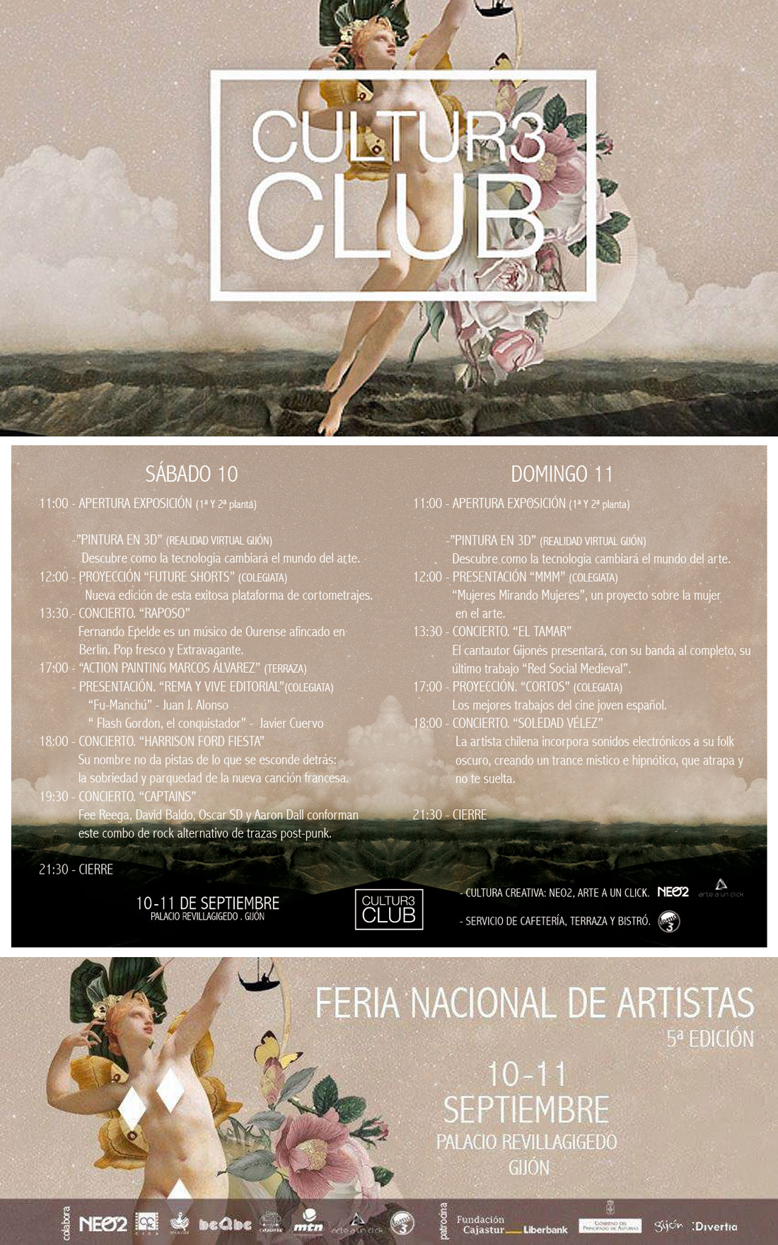 10 > 11 Settembre 2016: Cultur3 Club. Fiera Nazionale di Artisti 5ª Edizione. Gijón, Principato di Asturia. Spagna   Spazio MMM Mujeres Mirando Mujeres - Arte a un Click   Sabato 10 e domenica 11 settembre 2016 Innaugurazione: 10 Settembre alle 11.00h. Palazzo di Revillagigedo. Plaza del Marqués 2, Gijón Orario: 11.00 alle 21.30h. INSTALLAZIONE-AZIONE “MMM- MUJERES MIRANDO MUJERES” - DONNE GUARDANDO DONNE   Partecipazione di Monica Mura con l'opera "Prima...